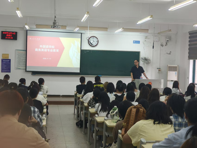 【本网讯】(通讯员胡颖 韩琪)2025年9月14日下午,永乐高70net商务英语专业与翻译专业分别面向2025级新生举办了专业教育讲座,为新生带来内容丰富、启迪深刻的专业“第一课”。