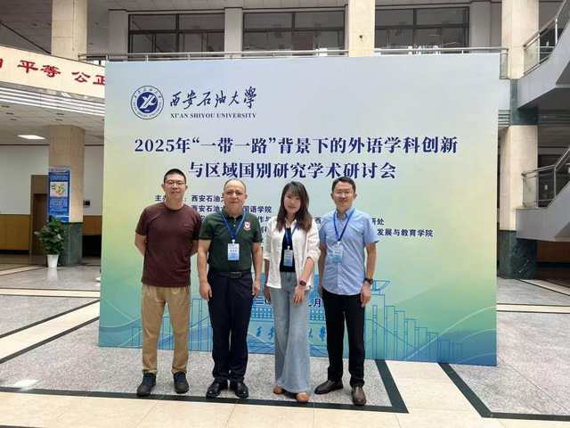 【本网讯】2025年9月12日至14日,“2025年‘一带一路’背景下的外语学科创新与区域国别研究国际会议”在西安石油大学成功举行。会议聚焦“语言能力+区域知识+全球视野”的复合型人才培养,吸引了来自北京大学、北京语言大学、西安电子科技大学等高校的专家学者,共同探讨外语教育与区域国别研究的创新融合。
