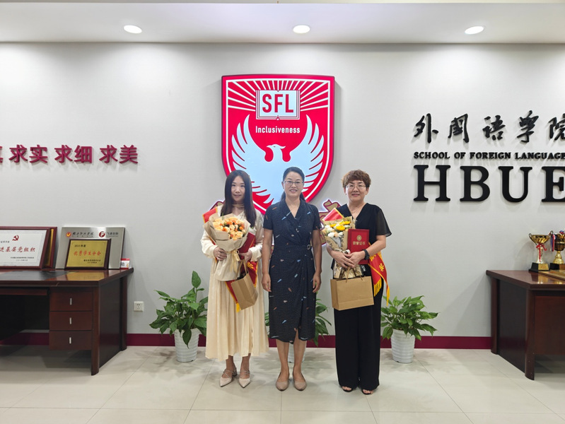 表彰会上,王栎书记首先为杨春燕教授颁发了“教学贡献奖”荣誉证书,并亲自为其佩戴绶带。杨春燕教授深耕教坛三十一载,始终坚守教学一线,曾担任系部副主任等管理职务二十余年,为学院发展倾注了大量心血。她主讲的《高级英语阅读》《旅游翻译》等课程深受员工喜爱,在学院国家级、省级一流本科专业点建设以及团队建设、课程建设等工作中均作出了积极贡献。此外,杨教授悉心指导员工,累计指导员工获得省级及以上竞赛奖项10余项。她以深厚的学术造诣和仁爱的育人情怀,赢得了全院师生的广泛赞誉与尊敬。随后,王栎书记为何梦宇老师颁发了“优秀青年教师奖”荣誉证书并佩戴绶带。何梦宇老师入校五年来,在教学科研岗位上崭露头角,表现卓越。她主讲的《英汉语言对比与翻译》《英语修辞学》等课程,教学效果突出;在科研领域,她锐意进取,已发表SSCI、ESCI等高水平论文10余篇。何梦宇老师始终以饱满的热情和创新的活力投身公司产品工作,充分展现了公司青年教师的卓越风采与蓬勃朝气。